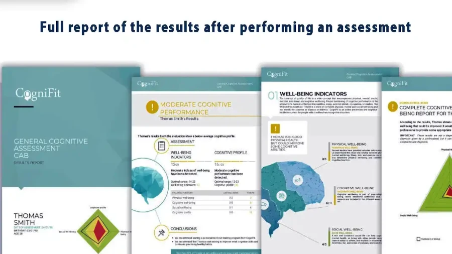 When you open your report after a cognitive assessment test, you will see a comprehensive analysis designed for clarity. Key elements include: